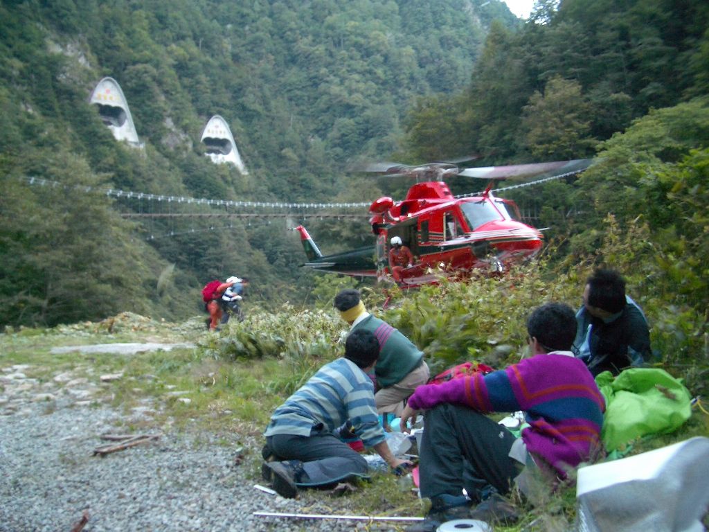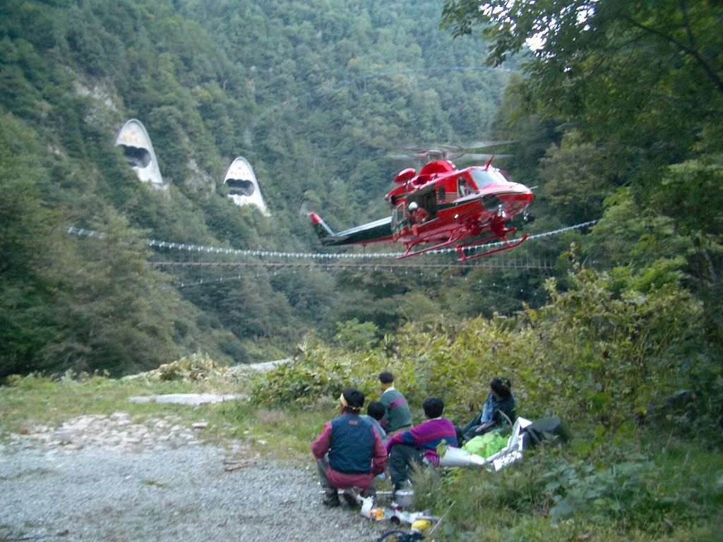黒部の沢に入溪していたパーティーの事故救助のヘリ・・・