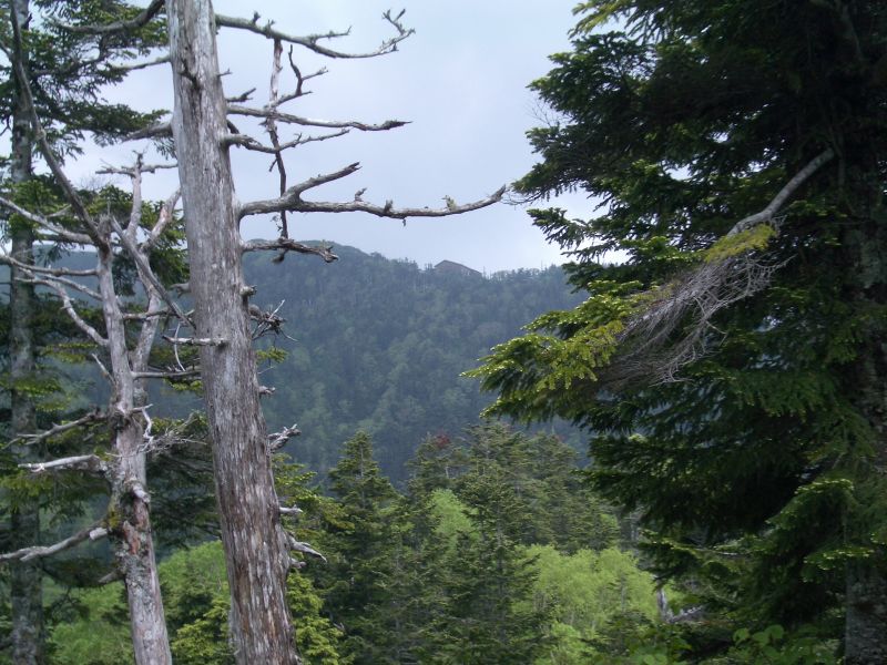 ・下山に振り返れば樹木の合間から西穂山荘が・・・・・