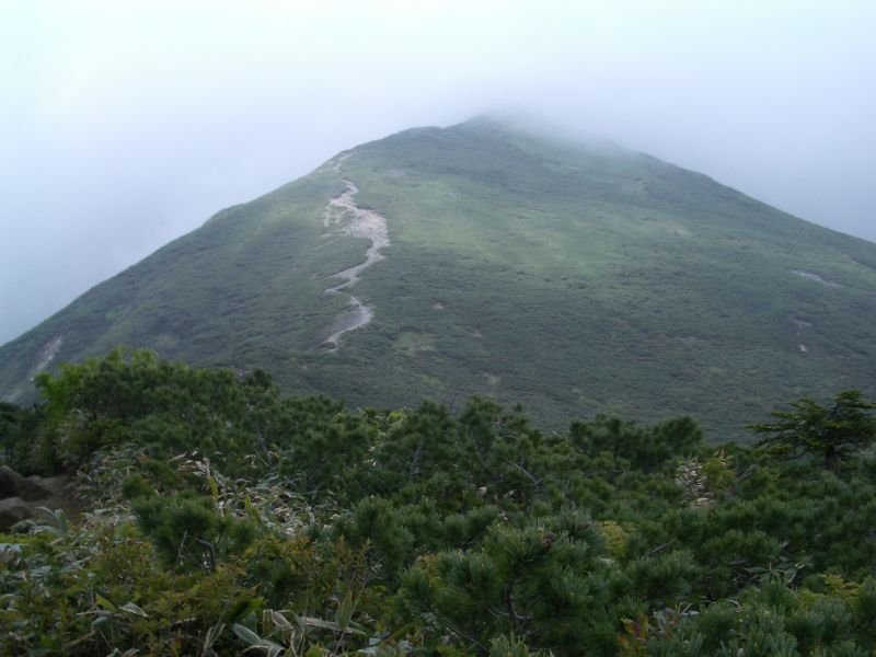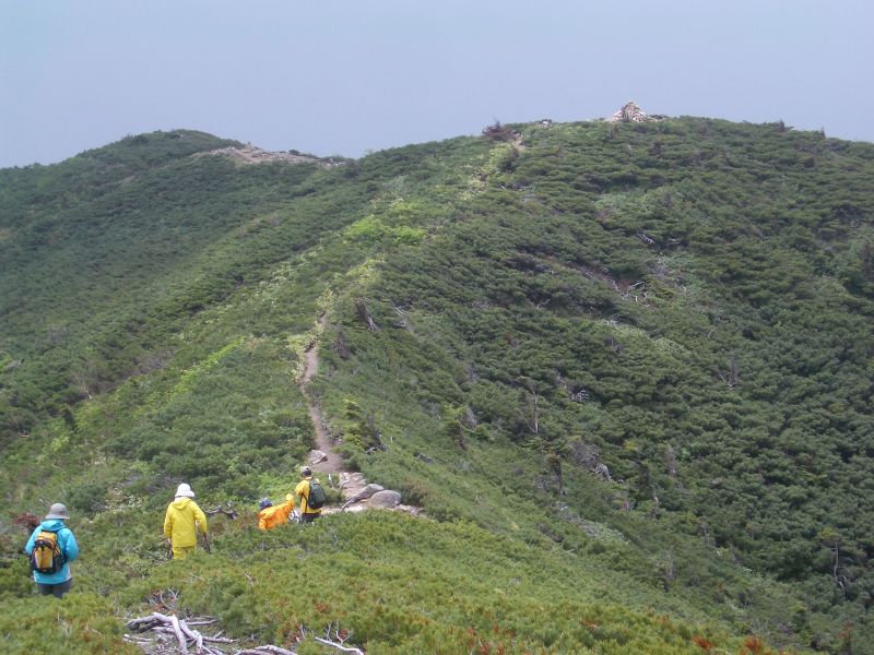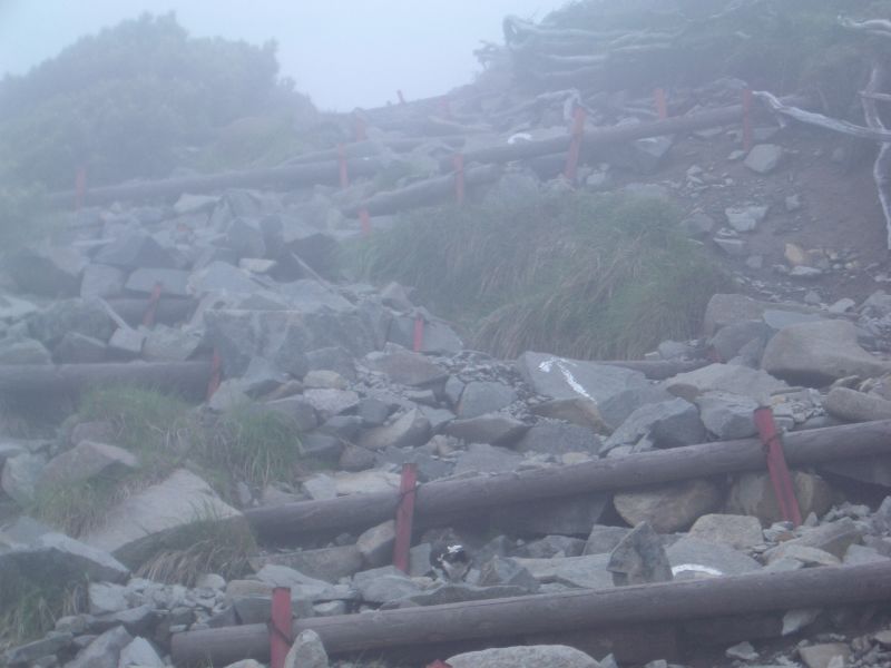 独標の頂上にて30分ほど休息し、ガスの晴れるのを待ったが、回復の兆しが無いので心残りであるが下山とする。