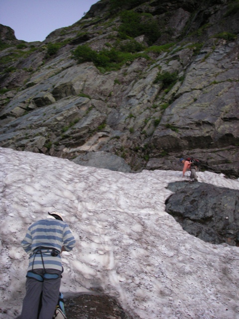 雪渓上に足跡も無く、大滝登ったら最後、降りてくるのは面倒くさい事になるのは明白。
