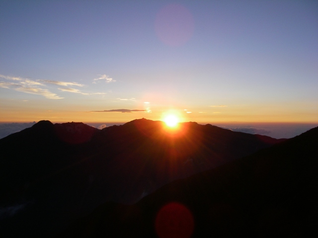 ここで登攀の準備を整え、鳳凰から昇る日の出を見て出発。
