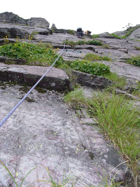 横断バンド上もロープを張りました。(2級程度のやさしいピッチでしたが・・・・)
