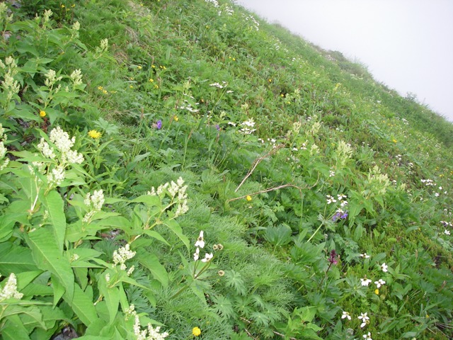 急いで武装解除してお花畑の中を縦走路に向かいます。