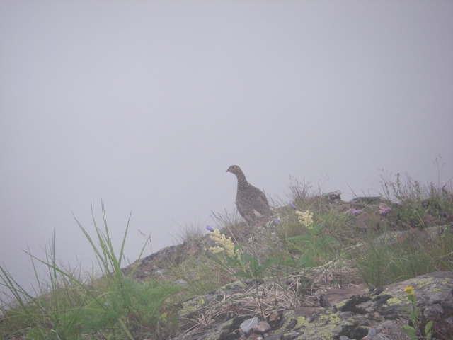 天気が悪いからという訳ではないかもしれませんが、雷鳥のひな2羽を発見。