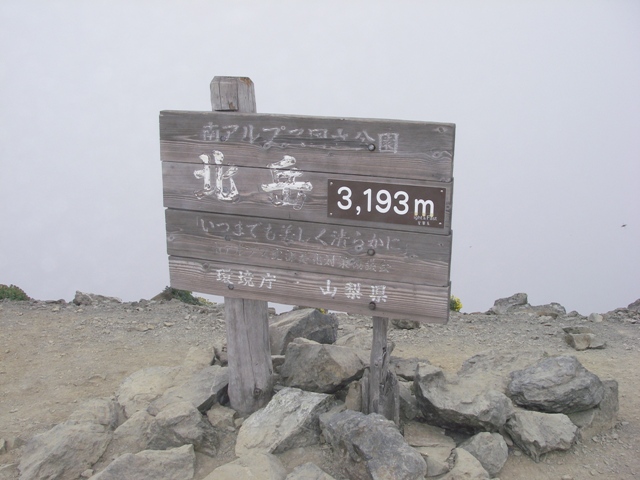 11:30に北岳頂上につきました。あれっ?標高が1m高くなっている。