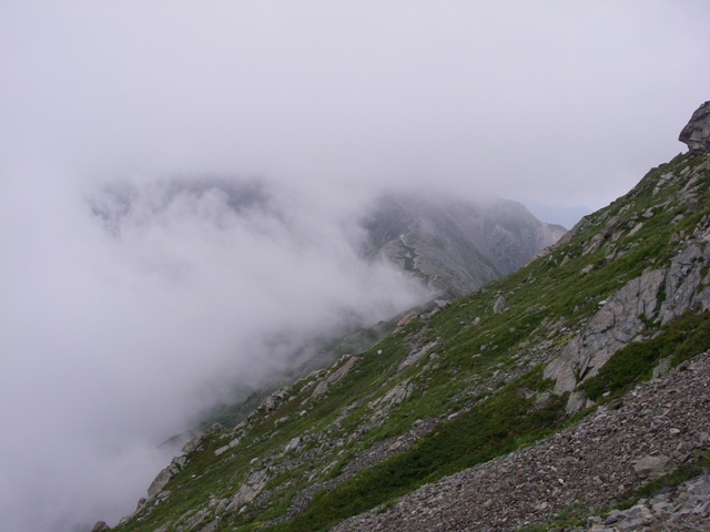 なんかまずい天候になってきました。急いで八本歯経由で大樺沢のデポ地点に戻ります。