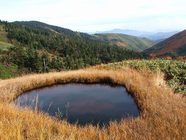 一登りで池塘が点在する稜線辺りに飛び出して、米子沢の遡行は終わりとなった。