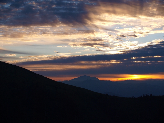 ここで避難小屋へ直接突き上げる沢道を見失い稜線直下の草原の中へと入り込んでしまうが、そこはもうフンワリと金色に輝く天上の楽園を歩くようだ。