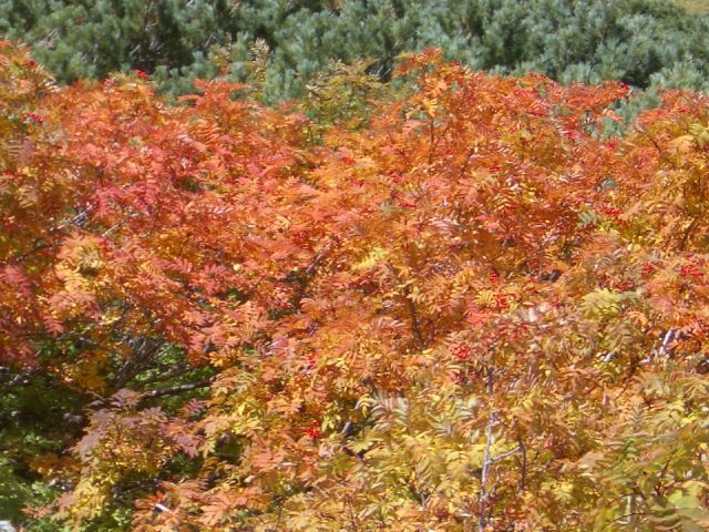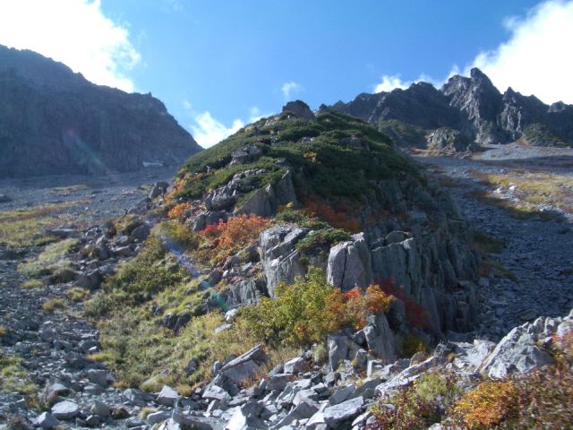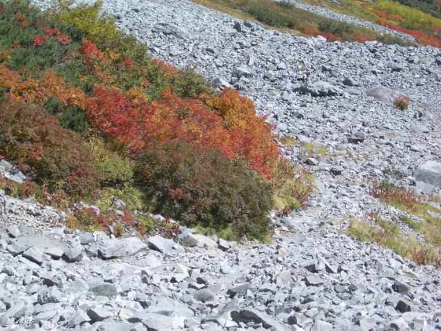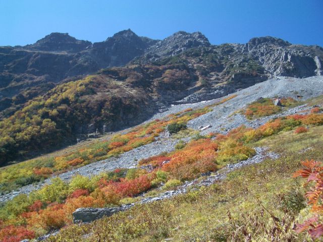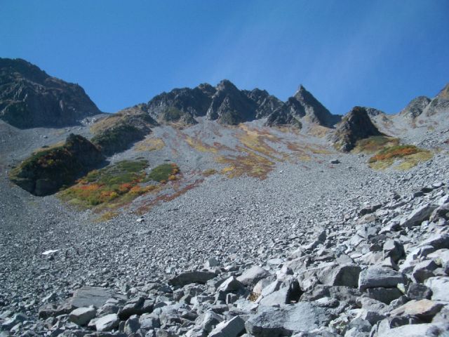 ・吊尾根と奧穂・・・・このあたりの紅葉はもう少し