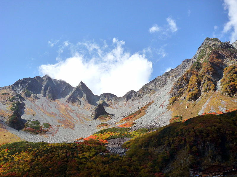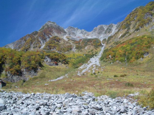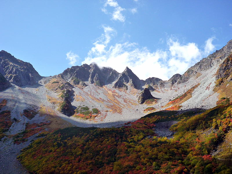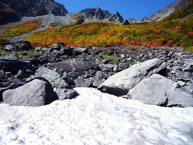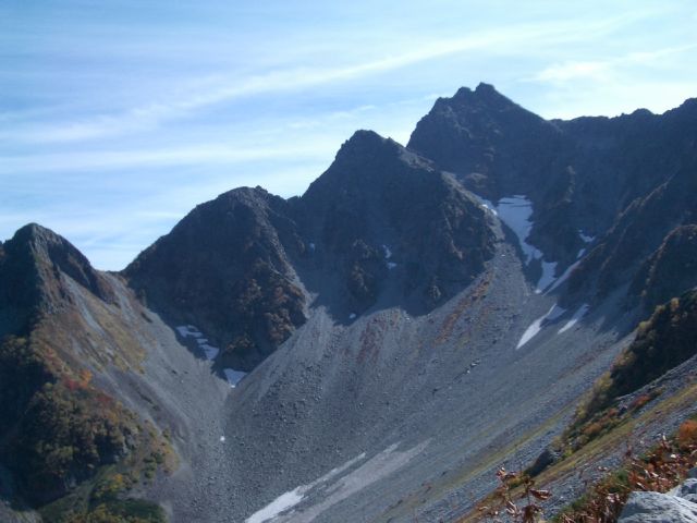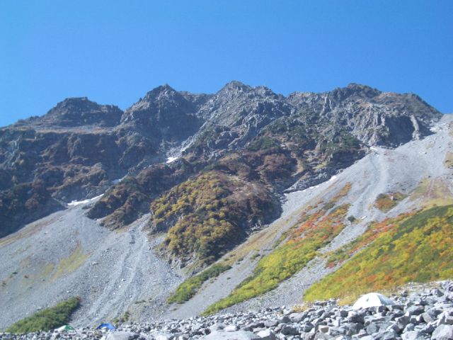 ・涸沢岳と涸沢槍・・・・紅葉が少しづつ