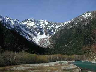 写真の通り残雪は少ない。但し天気は快晴・無風で絶好調!2時間で徳沢。もう一時間歩いて奥又白谷残雪末端へ。暑いし、荷物が重いしで早くもバテバテ。一向に足取りは駆らずで慶応尾根コルにて行動をあきらめる。PM3:00いや〜な予感がよぎる。夕食を食べて即就寝。