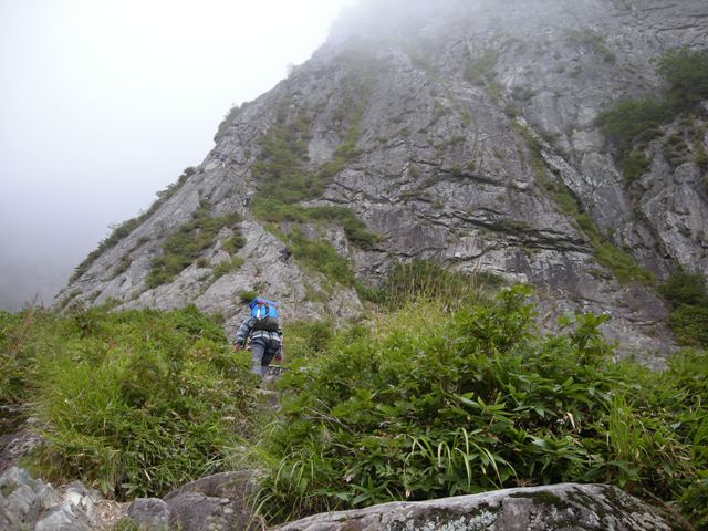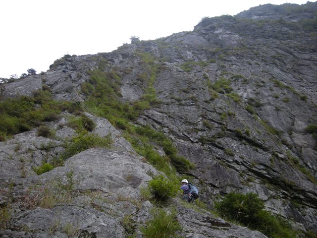 一汗も二汗もかいて中央稜取り付きへ。