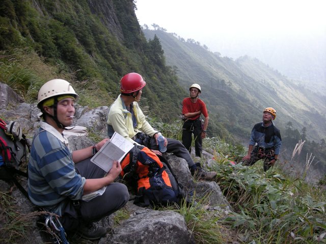 内海−鈴木直、北村−沖山−中山でザイルを組む。