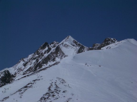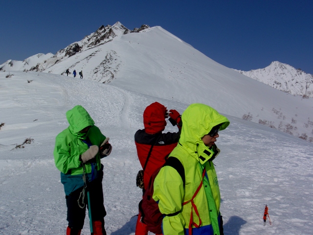 途中で下山する多くのパーティーとすれちがう。