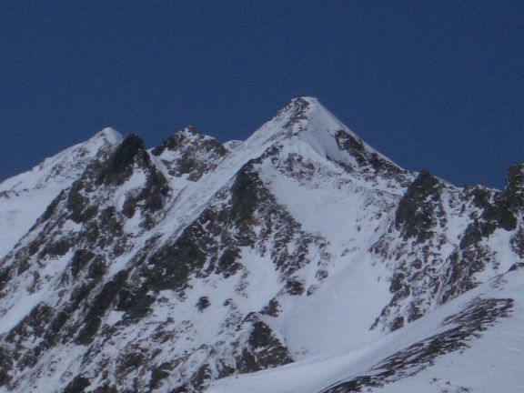 ・西穂の稜線、明日はあそこにいるはず、左のピークが西穂、正面のピークがピラミッド