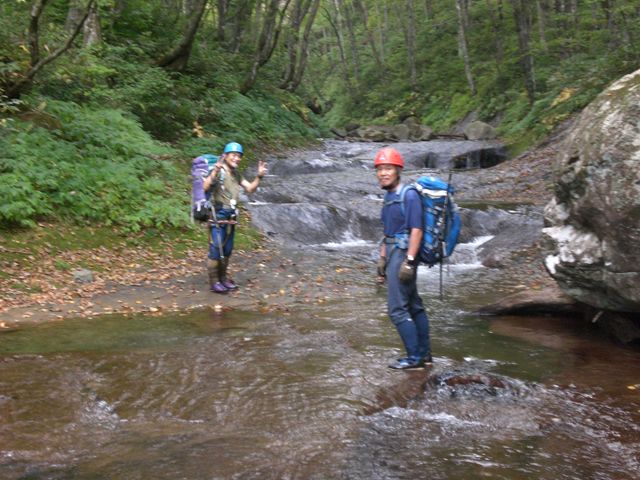 昔「天国で結ぶ恋」(確か、天城山心中?)というのがあったが、「天国のナメ」ってなんや? という興味もあって、ここのところ東北の山旅をしている三人組で紅葉の渓をもとめて一路「仙台」の西方にある二口山塊の「おおなめさわ」に行った。