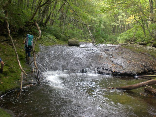 先頭を歩く牧野さんはイワナの魚影を何度も見たという。残念ながら二番手の私は見れず。