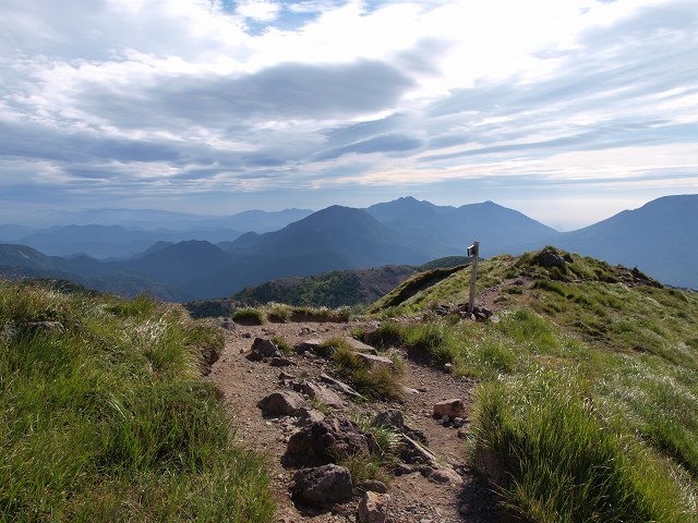 頂上からは中禅寺湖と男体山の威容、振り向けば上越国境の山々が雲の中に霞んでいる。晴天ならさぞかし気分が良いだろうが今ひとつの空模様だ。