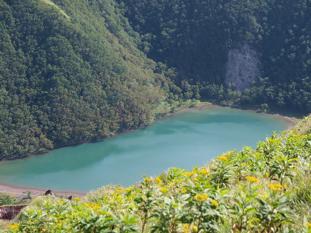 頂上でノンビリしたかったが風もあるのでパンを囓ってサッサと下山を開始する。復路は避難小屋から五色沼を経て登山口へ。