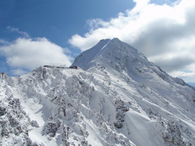 阿弥陀岳との分岐点に差し掛かったところで少し風が出てきたが、強風には至らず