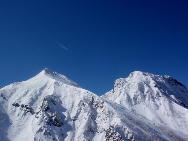 阿弥陀岳と中岳と飛行機雲