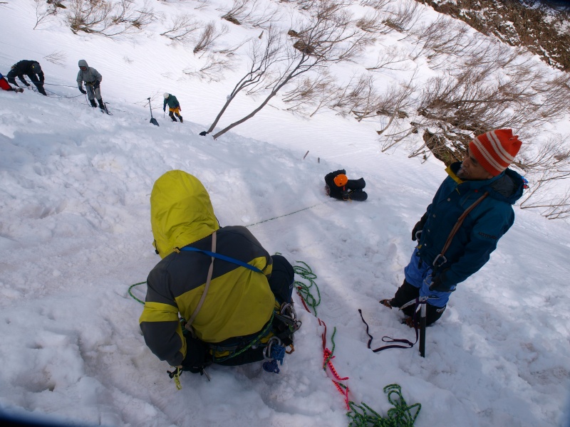 今回の雪上訓練はスタカットを想定したビレイワークを徹底的に覚えることを目的とした。