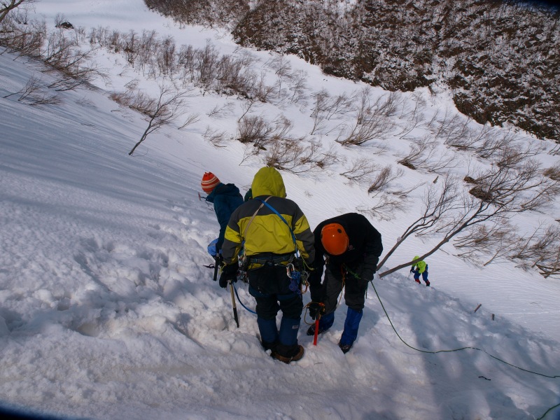実際には現場に於けるコンテでの行動は不確定要素が大きく、確実に「止める」ことを身に付けるならまずはスタカットでのシッカリとしたザイル操作を身に付ける事を重視した。