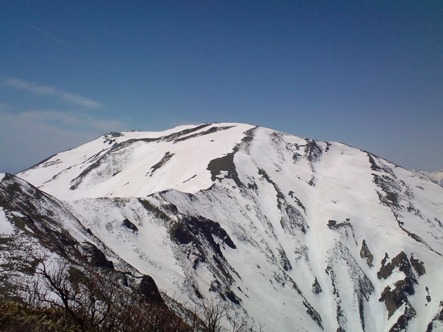 12:30 朝日岳頂上近くの平らな雪面にテント設営 本日行動6時間