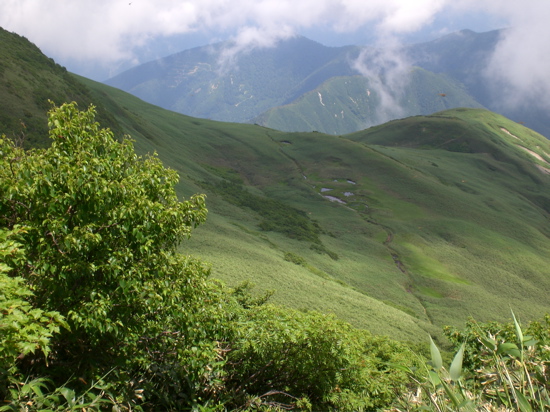※平標山頂より 若き日に下った土樽への「平標新道」と池塘