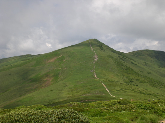 ※仙ノ倉への登りから平標を振り返る 左にかすかにトラバース道が