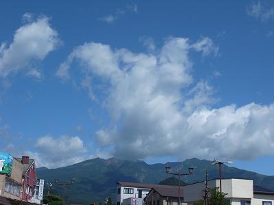 日光駅の外からは青空の下、目的地女峰山が眺められた。
