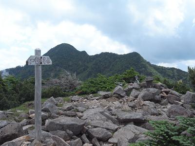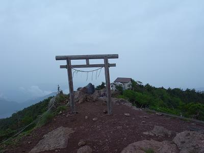 途中丸山を横目に見ながら高度を上げる。石が累積する焼石金剛を過ぎて樹林帯に入ると急登になって赤薙山山頂へ着く。着いた時は当初予定時間を上回ったのとまだバテが回ってこなかったことに一安心も、鳥居や道標を写真に撮りつつ大休憩。キスゲ平から一ヶ曽根手前までの写真は後になって誤って消去。