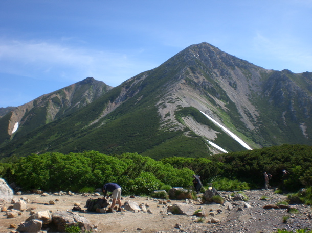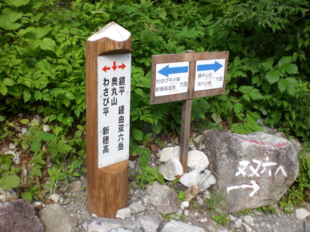 瓦礫のジグザクの道をただひたすら歩む。無心。右手から、かつて若き渓稜のとき湯俣から辿った「伊藤新道」が入ってくる。いまは廃道(小屋の人は「旧道」と呼んでいる)である。
