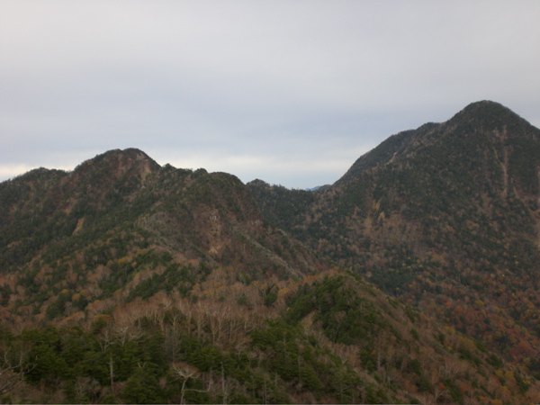 ※左・鋸山 右・皇海山 中央・不動沢のコル