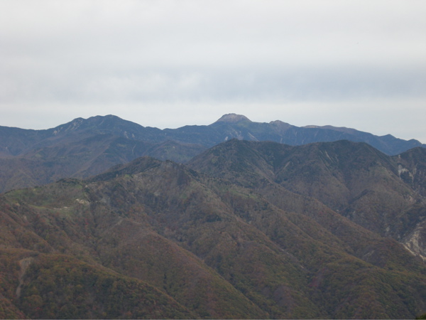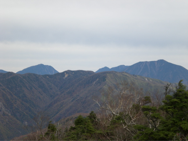 山頂は樹林に妨げられ見晴らしはないが、少し行くと展望台があり、そこからは鋸山、皇海山が指呼の距離にある。遠くに日光白根も望めた。