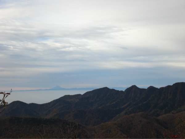 ※袈裟丸連峰と遥か遠くに富士山が