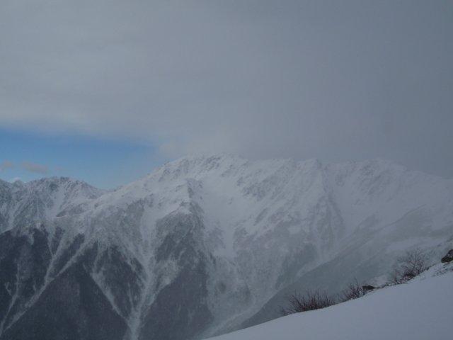 ボーコンの頭に出た。やっと北岳が見えた。でもすっかり悪天の兆し。