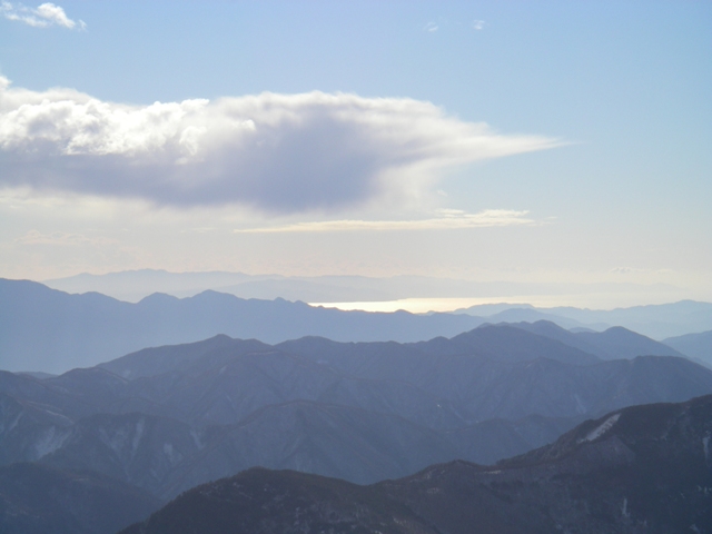 あれ?海だ。駿河湾と伊豆半島・天城連山が見えている。すごい。