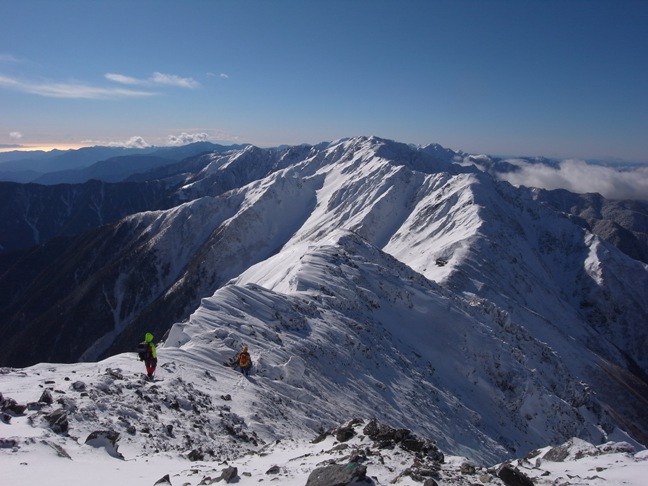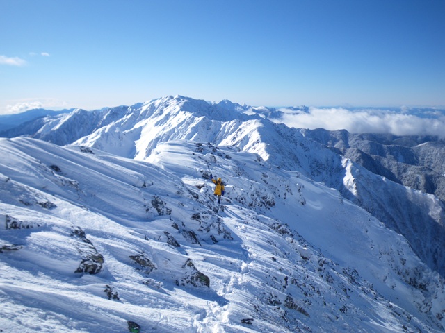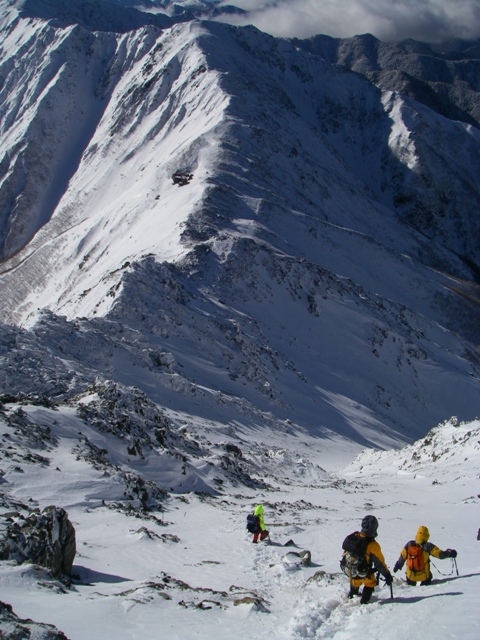 ここからの下りでは我々のトレースを辿って、後続者がぞくぞく現れる。