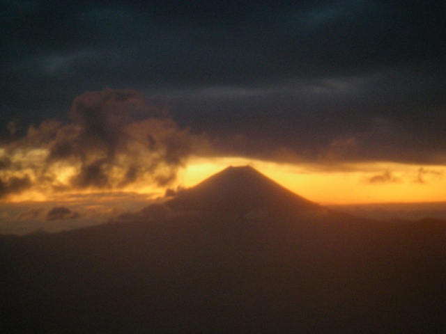 後ろを振り返ると富士山・・・・・あれ?富士山の右に光るのは何?