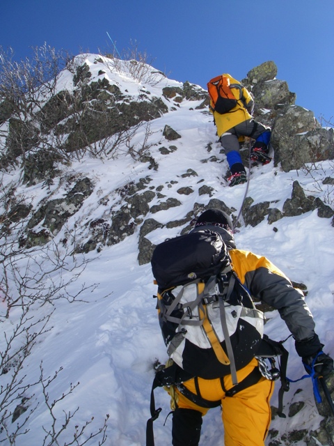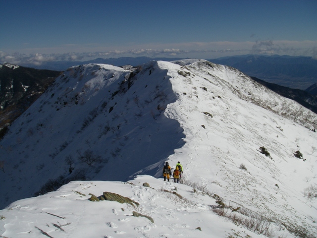 八本歯の頭から岩稜の下り。トレースが無いので慎重に下る。