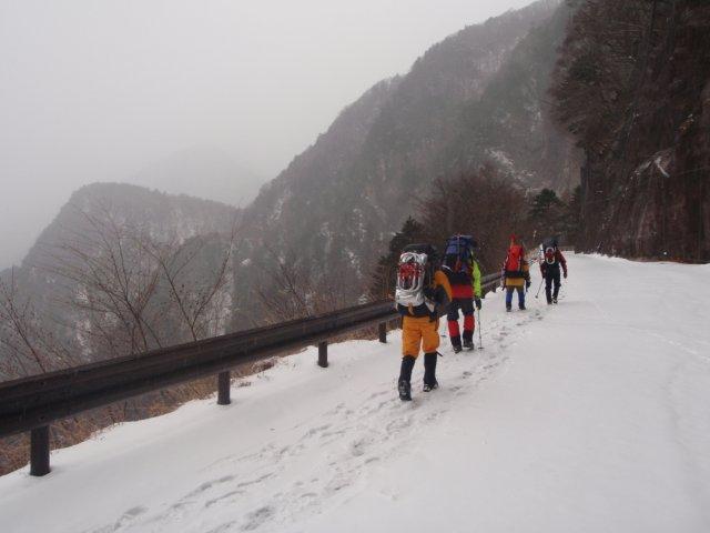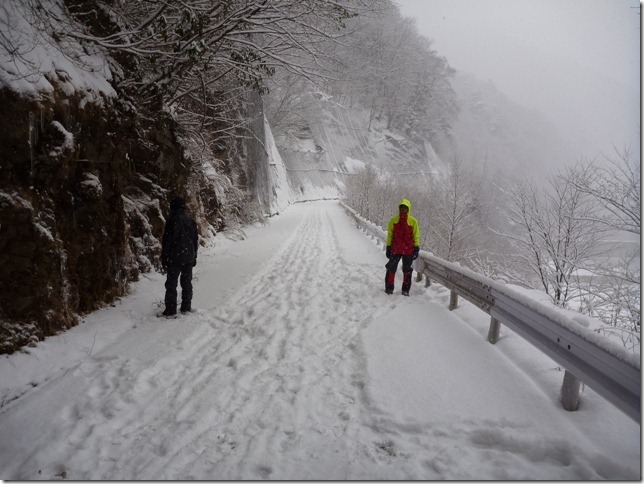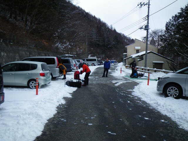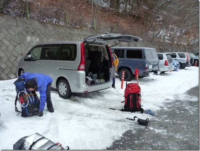 場所は赤垂隧道のあるき沢橋よりで頭上からつららが落ちてこないところを選ぶ。