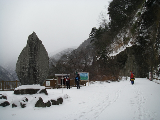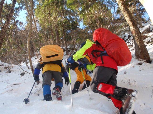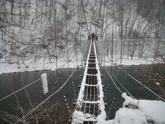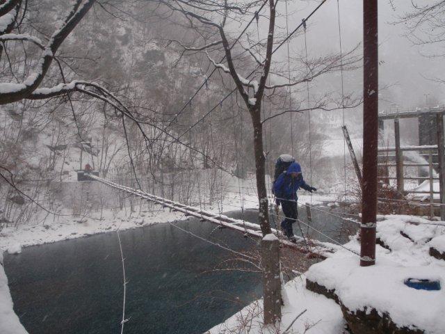 登山道が凍っているので途中からアイゼン着装にて何だカンダで吊橋まで2時間掛かった。
