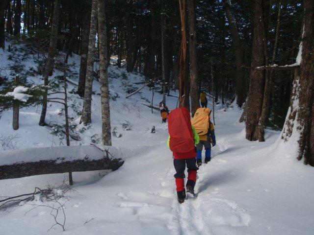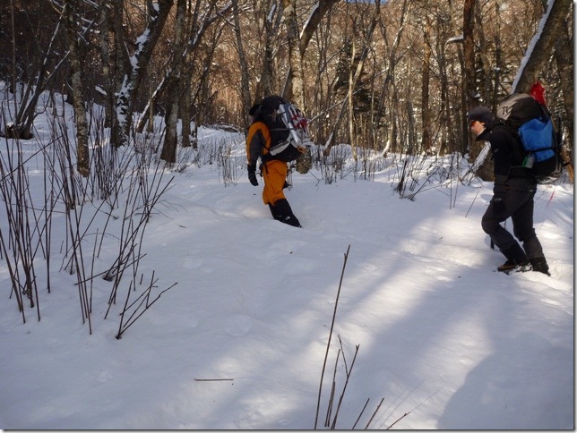 分岐から吊尾根へのトラバース。ここもスリップ厳禁。慎重に。
