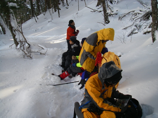 ボーコン沢の頭を過ぎ、途中の稜線で休む。