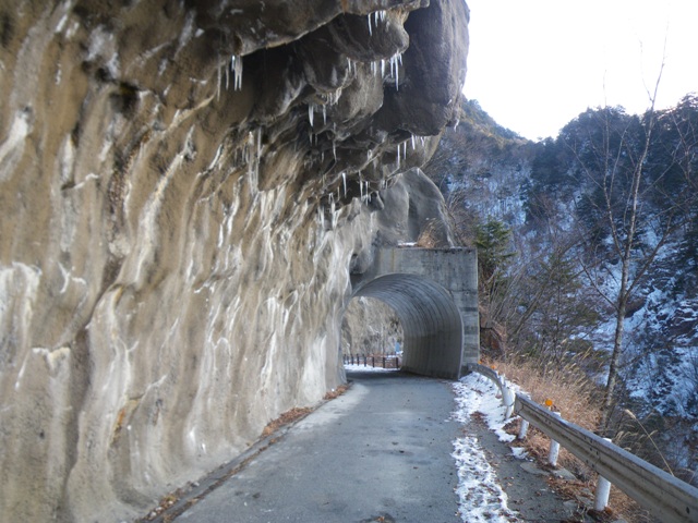 トンネル入り口出口は氷柱・・・これも倒れて・崩れるときもある。
