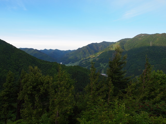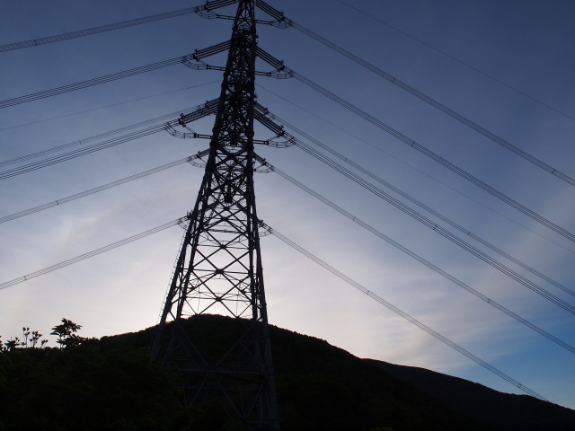 急な登りをしばらく続け超巨大鉄塔まで来ると一息、いくぶん視界が開け風も涼しい。
