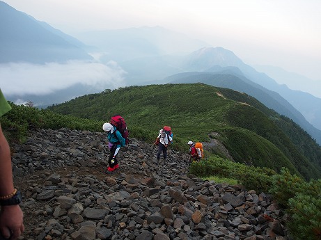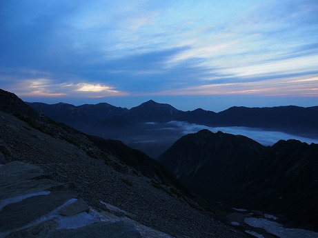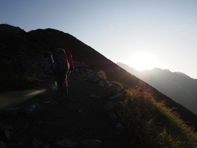 穂高岳山荘5:30(塩ラー) 柄沢岳6:30 北穂高岳:9:00 柄沢ヒュッテ小屋:12:30