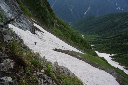 眼下には後続が雪渓渡り中。