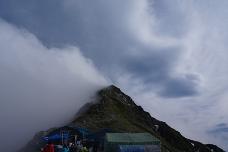 荷物を回収して御池小屋に行くとすでに多数のテント。N氏も予定変更らしく、すでにテントでくつろぎ中。